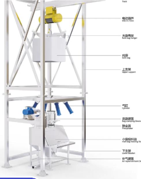 2、拍打設(shè)備可以保障物料順利從大袋進(jìn)入下步工序;