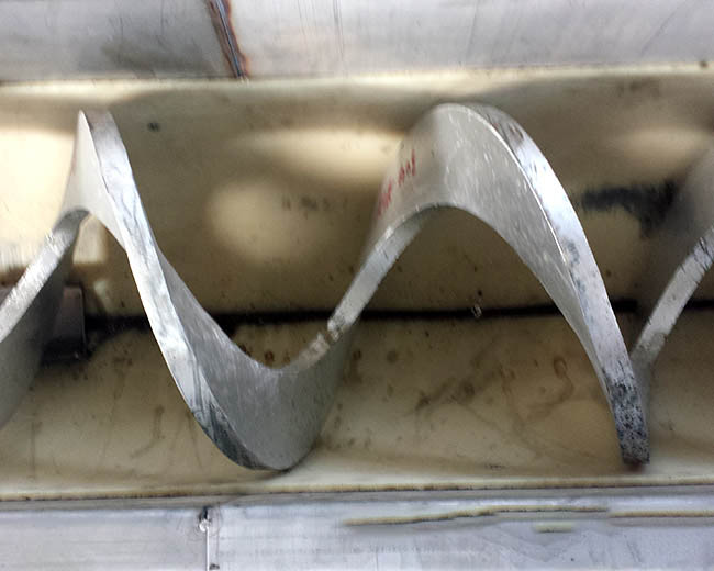 污泥輸送機(jī)是旋轉(zhuǎn)的螺旋葉片將物料推移而進(jìn)行螺旋輸送機(jī)輸送,使物料不與螺旋輸送機(jī)葉片一起旋轉(zhuǎn)的力是物料自身重量和螺旋輸送機(jī)機(jī)殼對物料的摩擦阻力。螺旋輸送機(jī)旋轉(zhuǎn)軸上焊的螺旋葉片,葉片的面型根據(jù)輸送物料的不同有實(shí)體面型、帶式面型、葉片面型等型式。螺旋輸送機(jī)的螺旋軸在物料運(yùn)動(dòng)方向的終端有止推軸承以隨物料給螺旋的軸向反力,在機(jī)長較長時(shí),應(yīng)加中間吊掛軸承。