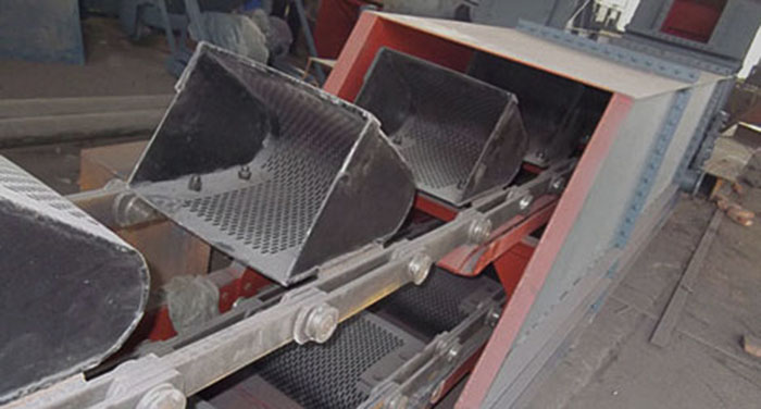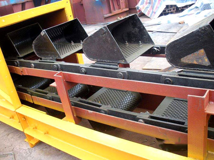 脫水斗式提升機(jī)是選煤廠和鈣鎂磷肥廠常用的機(jī)械設(shè)備之一,具有結(jié)構(gòu)簡(jiǎn)單、運(yùn)轉(zhuǎn)可靠的優(yōu)點(diǎn)。通常兼有脫水和運(yùn)輸雙重作用??勺鳛榻K脫水設(shè)備,也可作為初步脫水設(shè)備。它適用于提升洗滌后的中煤、矸石和冷卻后的鈣鎂磷肥,也適用輸送洗滌后的其他塊狀或顆粒狀的物料,物料在提升輸送過(guò)程中,可在重力作用下自行脫水。對(duì)于大塊物料及水分要求不太嚴(yán)格的產(chǎn)品,如跳汰分選作業(yè)的中煤、矸可用脫水斗式提升機(jī)直接作為zui終脫水設(shè)備,獲得終出廠產(chǎn)品。對(duì)粒度較細(xì)、或脫水不太容易、水分又要求比較嚴(yán)格的產(chǎn)品,脫水斗式提升機(jī)可作為初步脫水設(shè)備。如粗煤泥回收作業(yè)中,撈坑沉淀的煤泥可先經(jīng)脫水斗式提升機(jī)初步脫水,再進(jìn)一步用脫水篩和離心脫水機(jī)作zui終脫水。