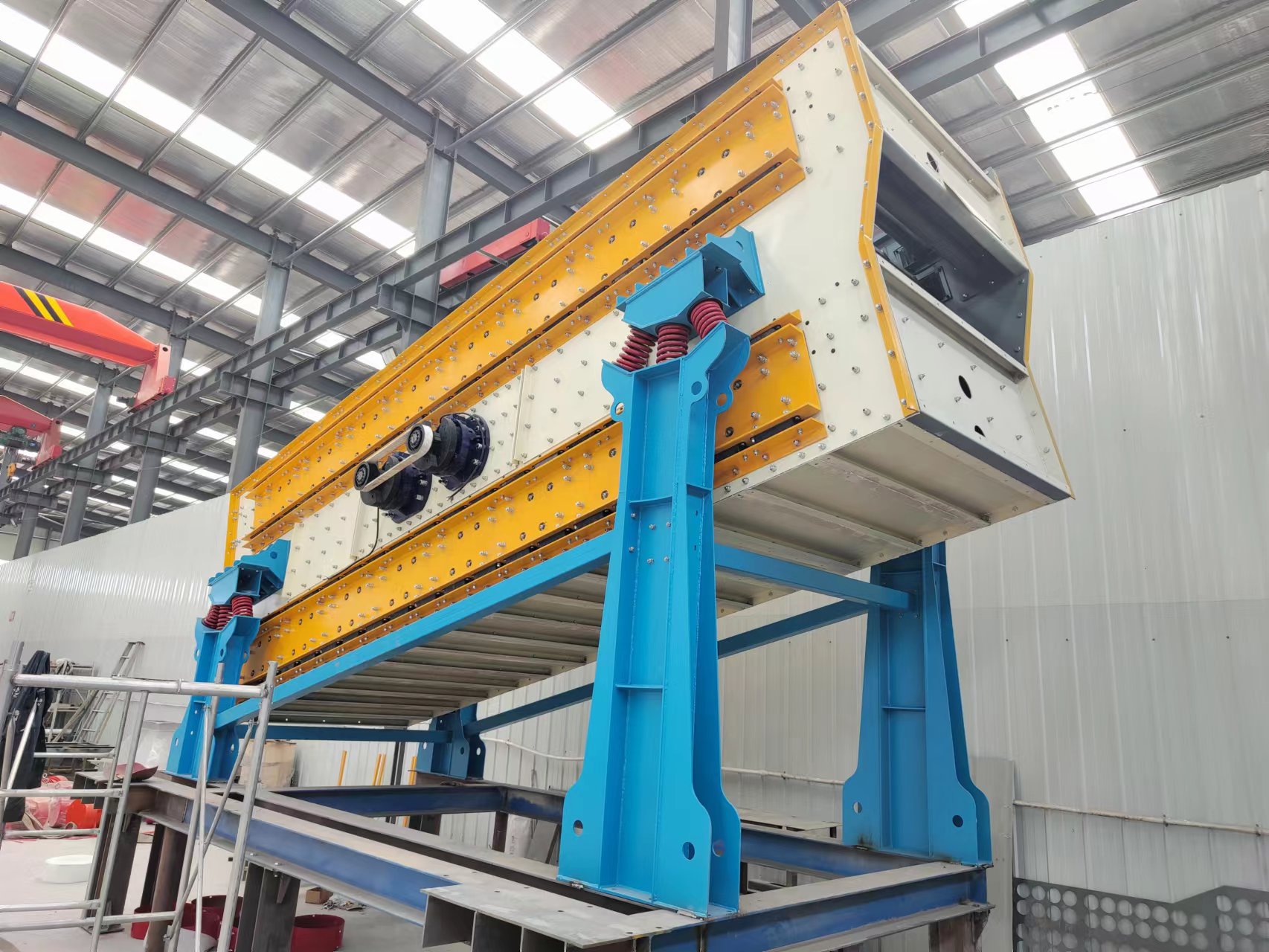 2、將香蕉篩和弛張篩的各自優(yōu)點(diǎn)有機(jī)地融合在一起。入料端物料速度快、料層薄,大量物料透篩,處理量高。排料端篩面傾角低,物料速度慢,這得以將剩余的篩下物徹底透篩,達(dá)到非常高的篩分效率。